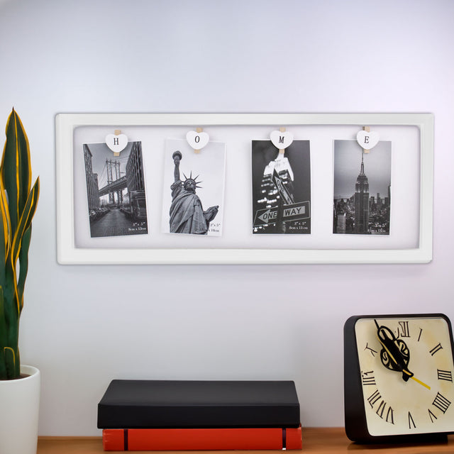 Portarretrato de Tendedero Familiar Marco de Madera Blanco 4 Fotografías 20x50cm
