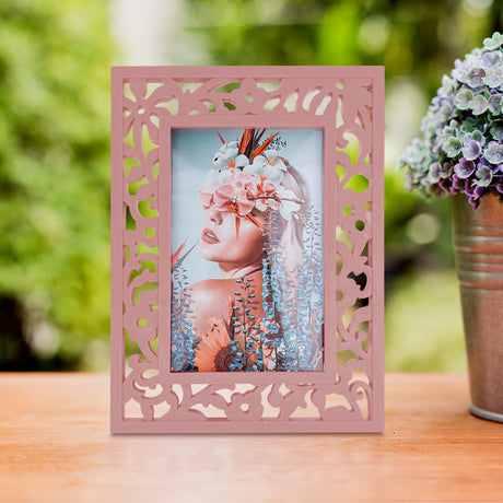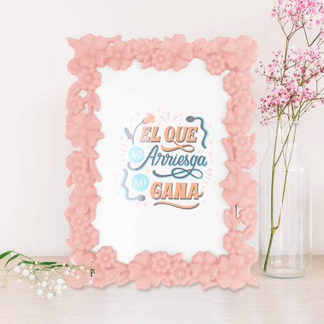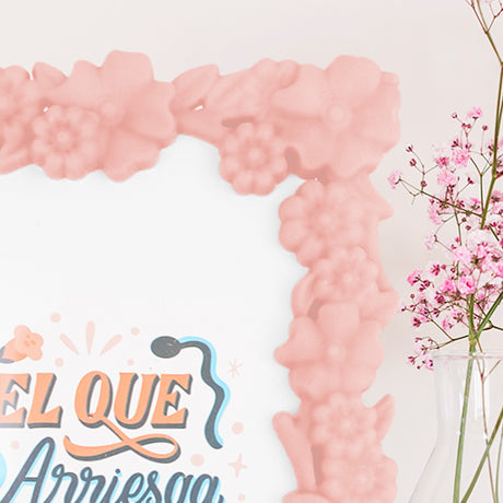- Portarretratos con Diseño de Flores color Rosa Palo 10x15cm $ 3999Precio unitario /Agotado