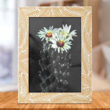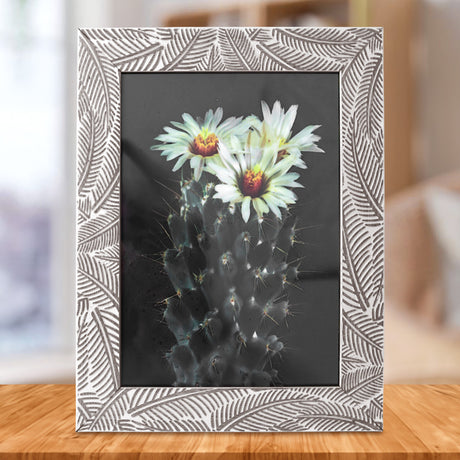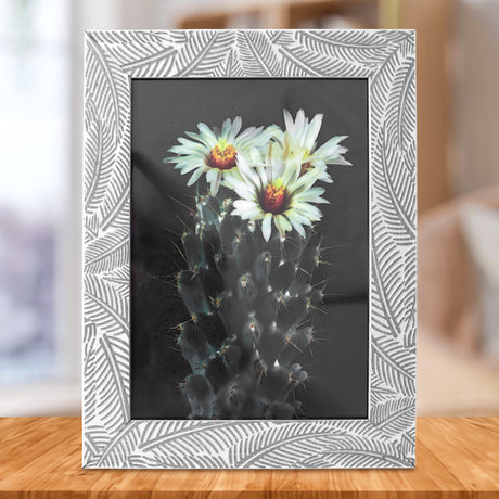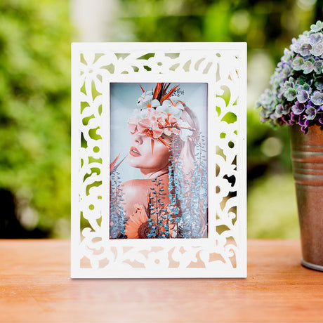 - Portarretratos con Diseño de Flores color Blanco 10x15cm $ 3999Precio unitario /Agotado
