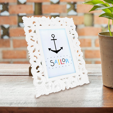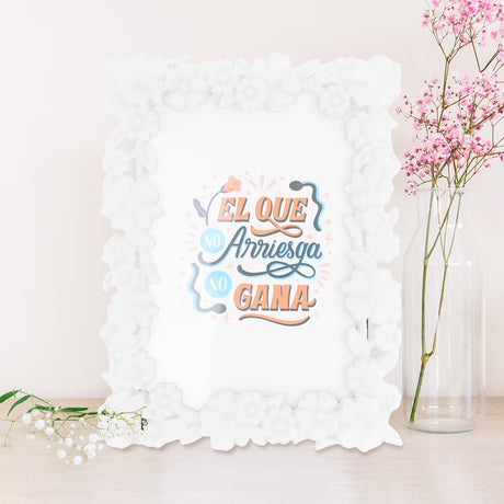 - Portarretratos Clásico con Diseño de Flores color Blanco 10x15cm $ 3999Precio unitario /AgotadoPoca disponibilidad (6 unidades)