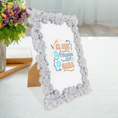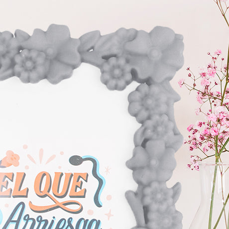 - Portarretratos Clásico con Diseño de Flores color Gris 10x15cm $ 3999Precio unitario /Agotado