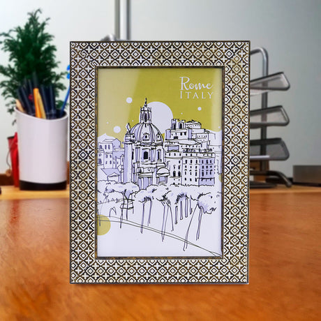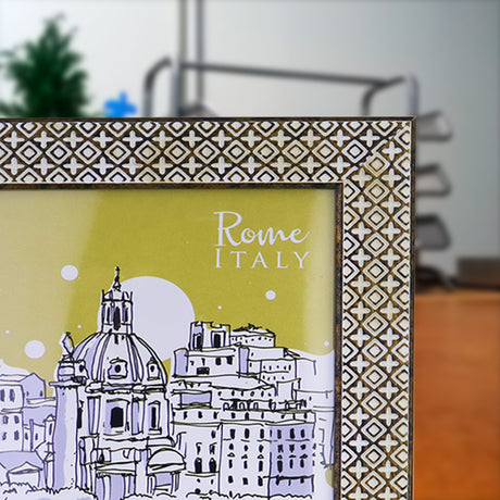 - Portarretratos con Marco Decorado de Grecas color Oro, 10x15cm $ 2999Precio unitario /AgotadoPoca disponibilidad (10 unidades)
