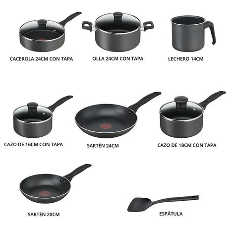 BATERIA FAMILY COOK T-FAL 13 PZAS GRIS**