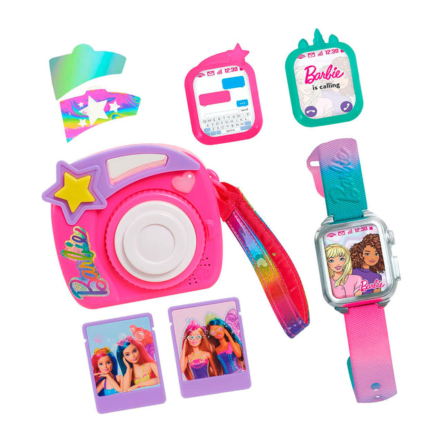 - Incluye: 1 cámara Barbie rosa con flash de estrella, 1 foto de reproducción y 1 funda de reloj.