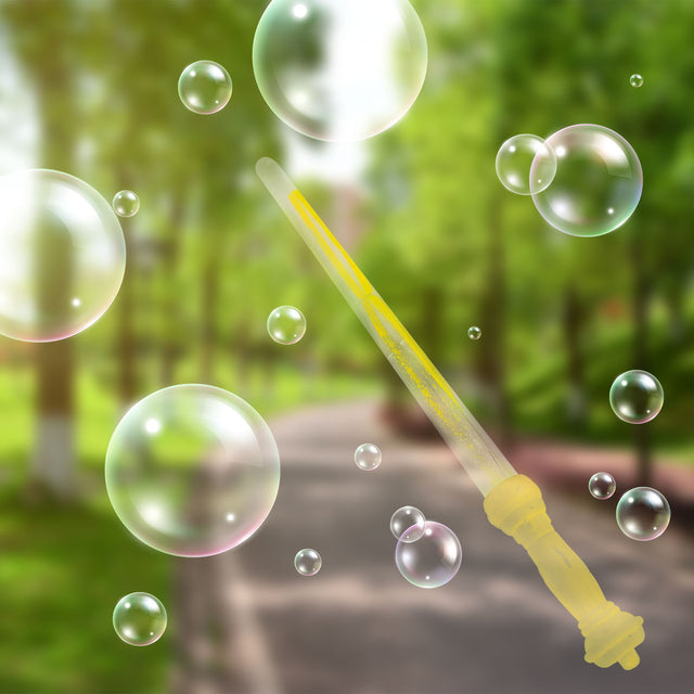 - Simplemente agita la varita o sopla suavemente para ver cómo las burbujas vuelan en el aire.