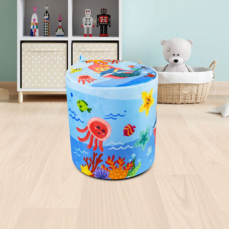 Banquito Cilindro Organizador, Bajo del Mar, 40 x 30cm