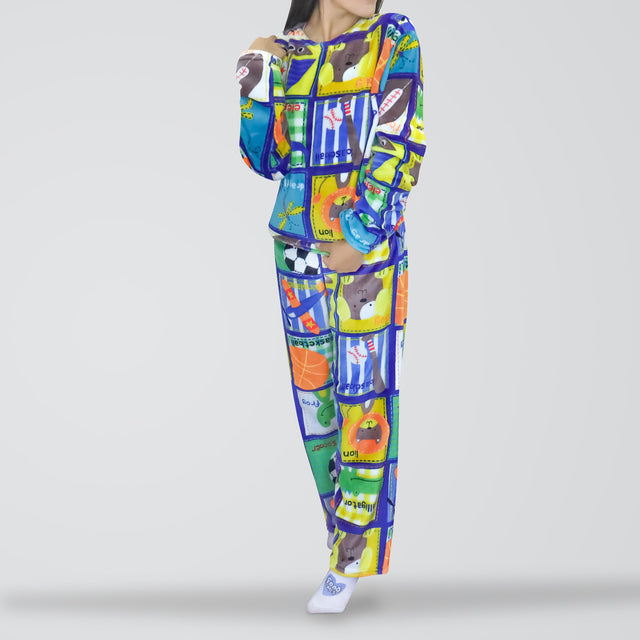 Conjunto de Pijama Polar con Diseño de Deportes para Dama