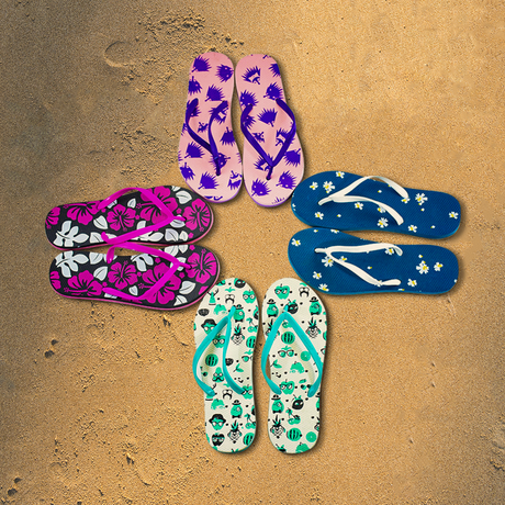 $ 4999Precio unitario /AgotadoPoca disponibilidad (6 unidades)Sandalias Serigrafiadas para Dama, color Morado