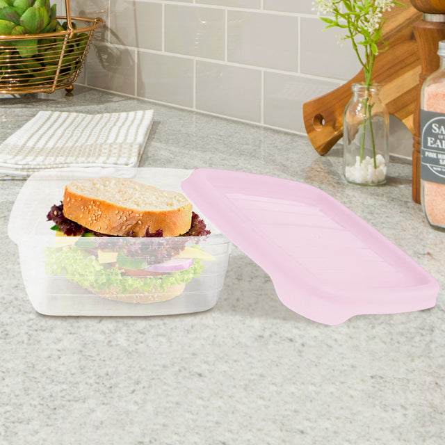• El contenedor de plástico cuadrado con tapa en sello hermético evita derrames.