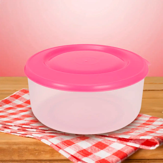 Contenedor Redondo de Plástico, Color Rosa, 550 ml