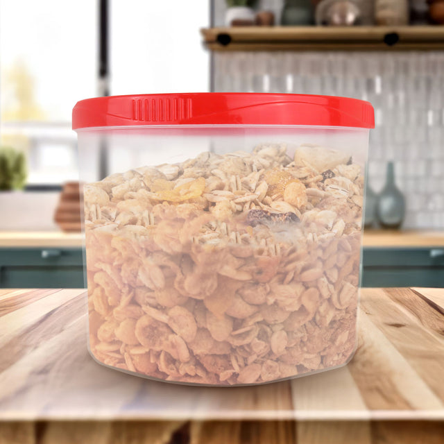 Contenedor Transparente Redondo, Tapa Color Rojo, 1.2 L