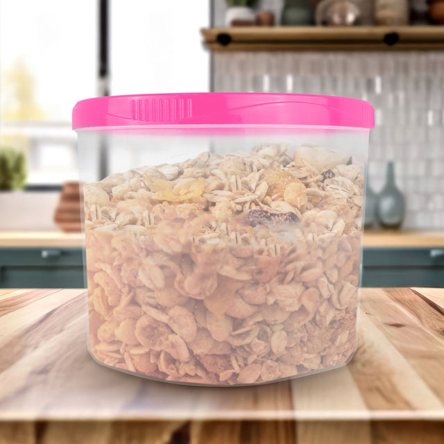 Contenedor Transparente Redondo, Tapa Color Rosa, 1.2 L