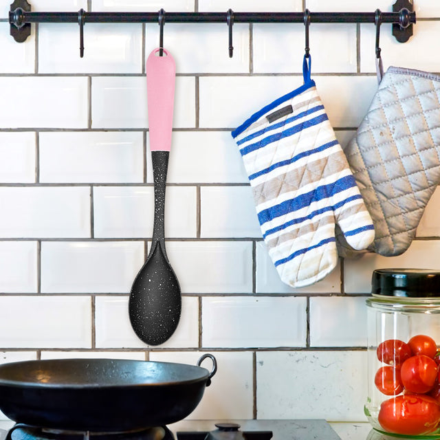 Cuchara Lisa, Inkanto, Color Negro con Mango Rosa
