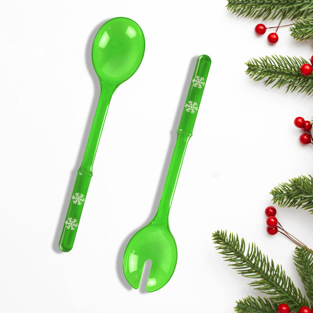 Pinzas/cucharas color verde con diseño navideño para ensalada