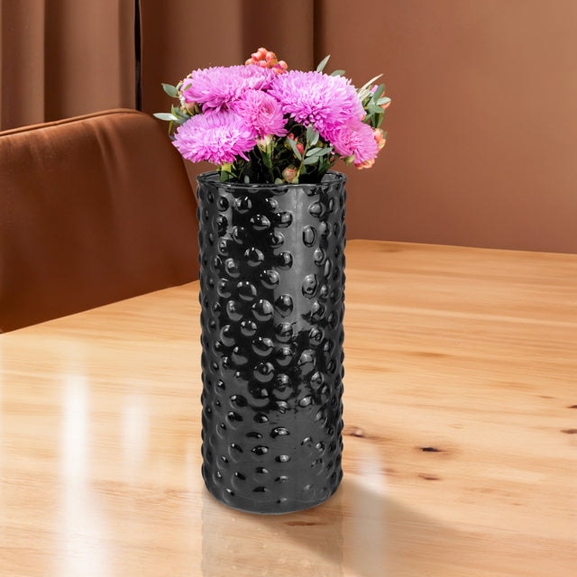 Florero Diseño Burbujas, Color Negro, 12x4 cm