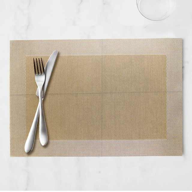 - Mantel individual tejido con materiales de PVC, resistentes al calor, al deterioro y antideslizantes.