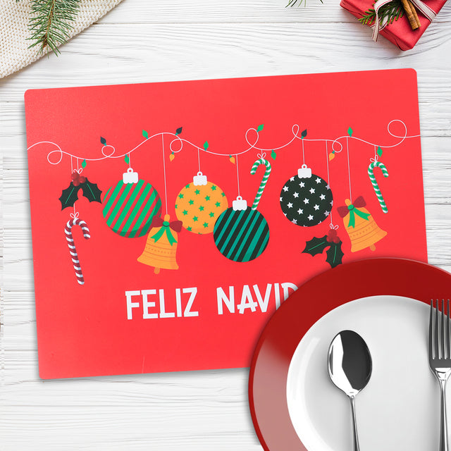 Set de 4 Manteles Individuales Navideños, Diseño Esferas