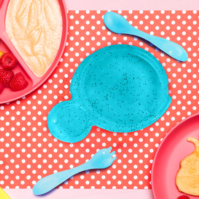Set de Plato Glitter Azul y 2 Cubiertos Azules para Bebé, Nuby