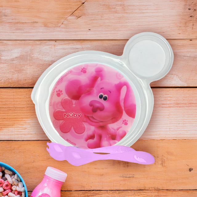 Set de Plato Transparente y Cubiertos Morados para Bebé, Personaje Magenta, Las Pistas de Blue, Nuby