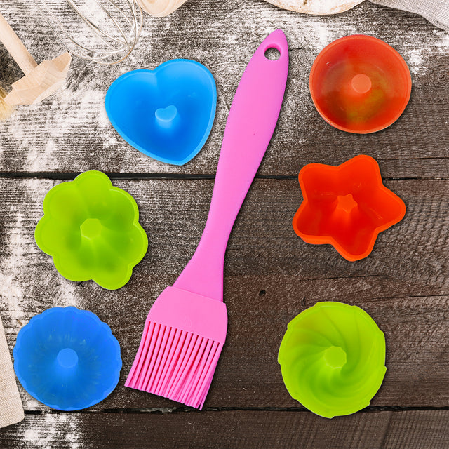 • Este kit de utensilios domésticos se compone de una brocha de silicona y 6 moldes de silicona.