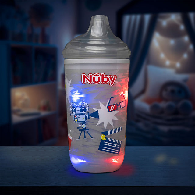 Vaso Entrenador Antiderrames Térmico con Boquilla Nuby 360° Luminoso color Gris 10oz.