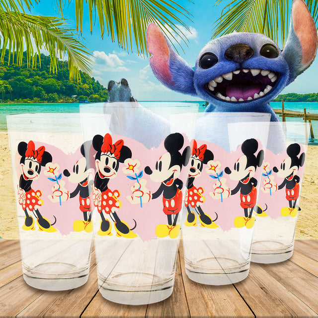 Vasos de Cristal Mickey & Minnie, 4 pzas