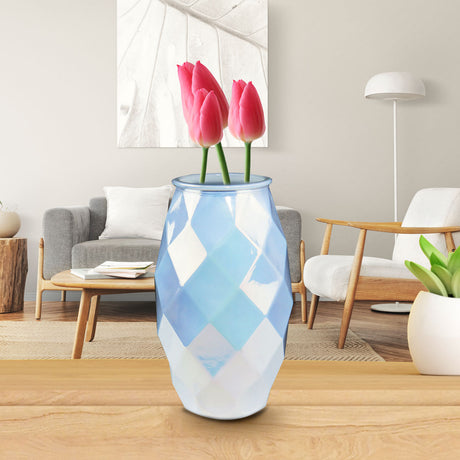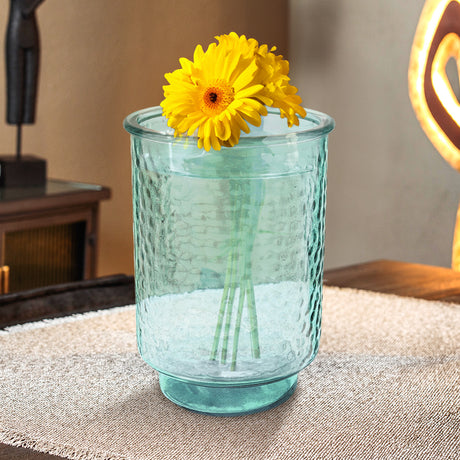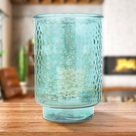 Florero Cilíndrico de Cristal color Azul, 10x15cm