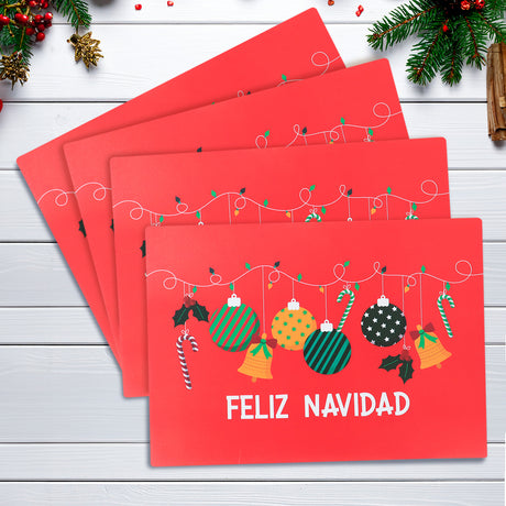 Set de 4 Manteles Individuales Navideños, Diseño Esferas