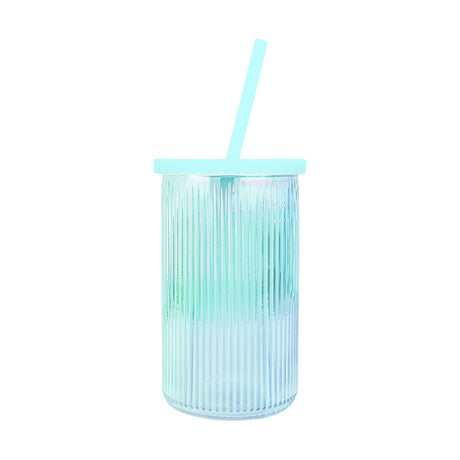 $ 1499Precio unitario /AgotadoVaso de Cristal con Tapa y Popote, Tornasol Color Azul, 430 ml