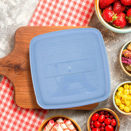 Contenedor de Plástico con Tapa Azul, 23x23x20cm