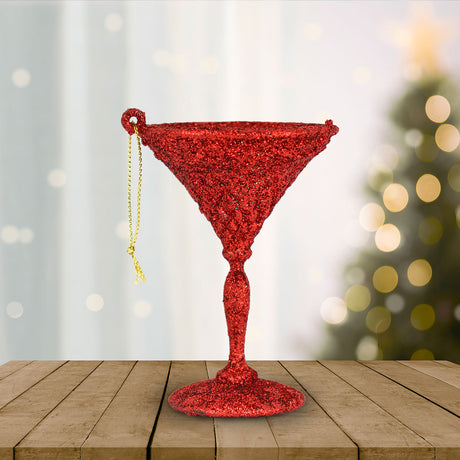 Ornamento en Forma de Copa de Navidad con Diamantina color Rojo
