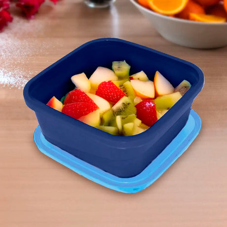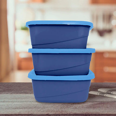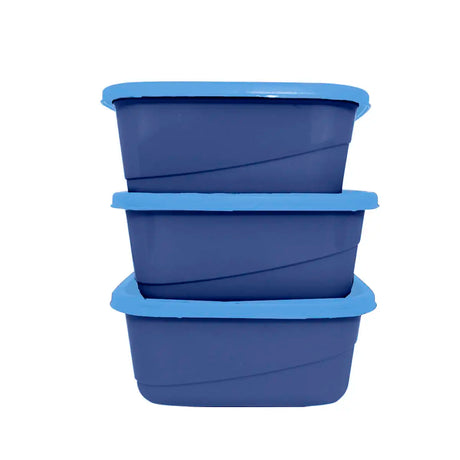 Set de 3 Contenedores Cuadrados, Color Azul con Tapa, 750 ml