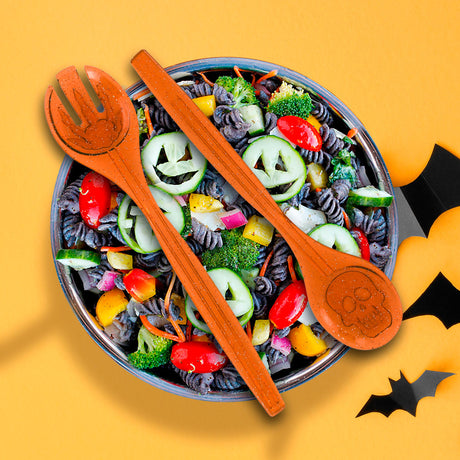 Cucharas color Naranja con Diseño de Halloween para Ensalada