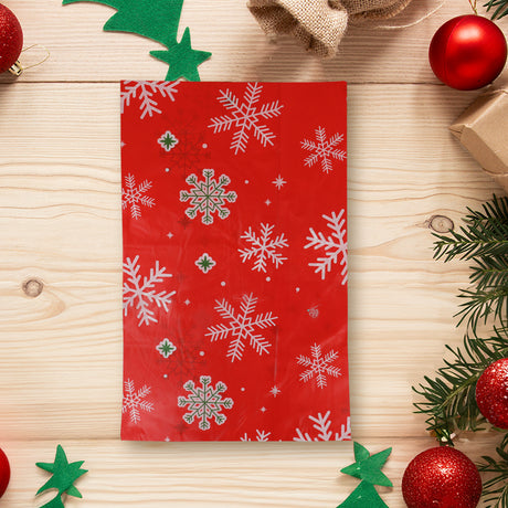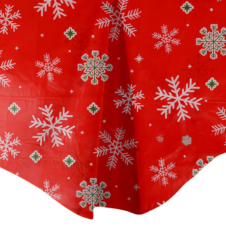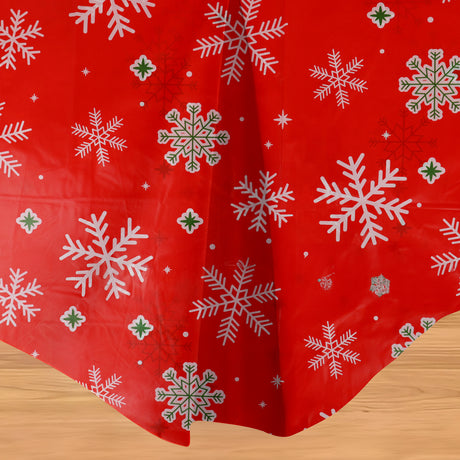 Mantel Navideño color Rojo con Diseño de Copos de Nieve