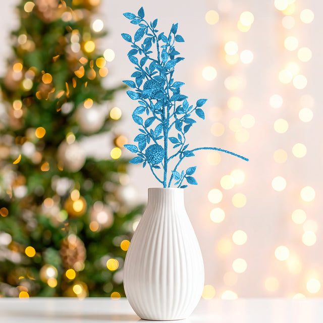 Vara de Follaje Artificial, Glitter, Color Azul