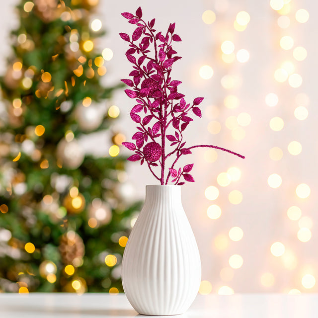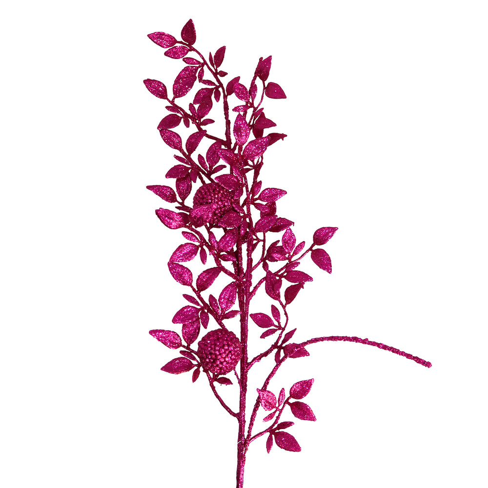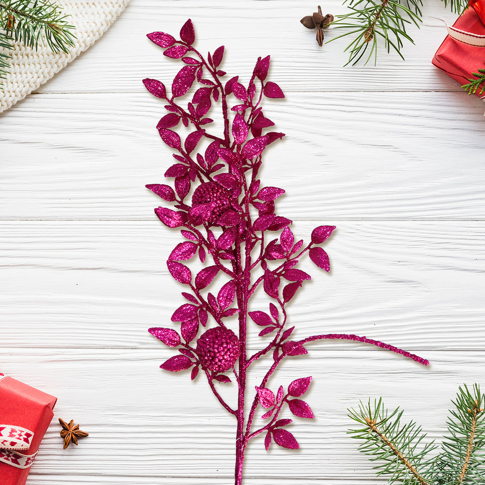 Vara de Follaje Artificial, Glitter, Color Rosa