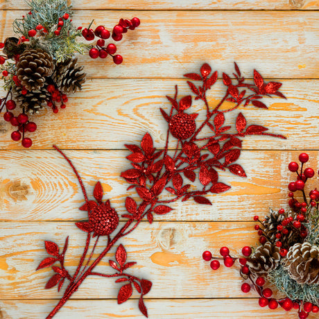 $ 19999$ 39999Precio unitario /Agotado Follaje, Rama Decorativa, Glitter, Color Rojo