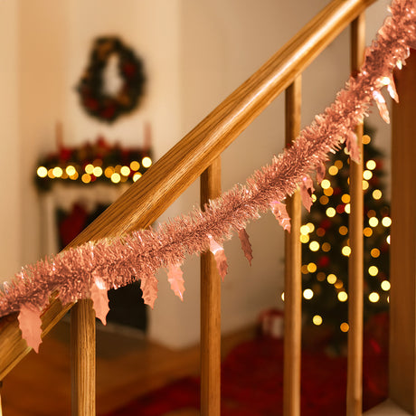 Guirnalda Navideña Brillante, Detalles Hojas, Color Bronce