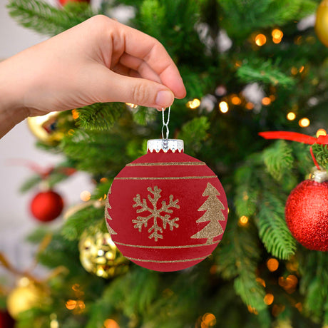 Esfera Navideña Terciopelo, Color Vino, 10 cm