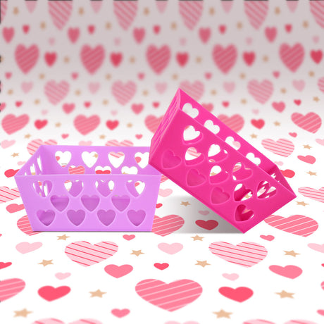 Canastas con Orificios de Corazon Color Rosa, 2 piezas.