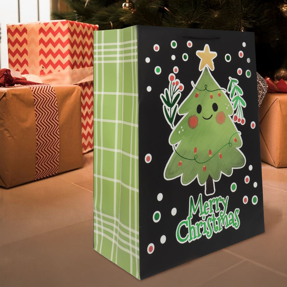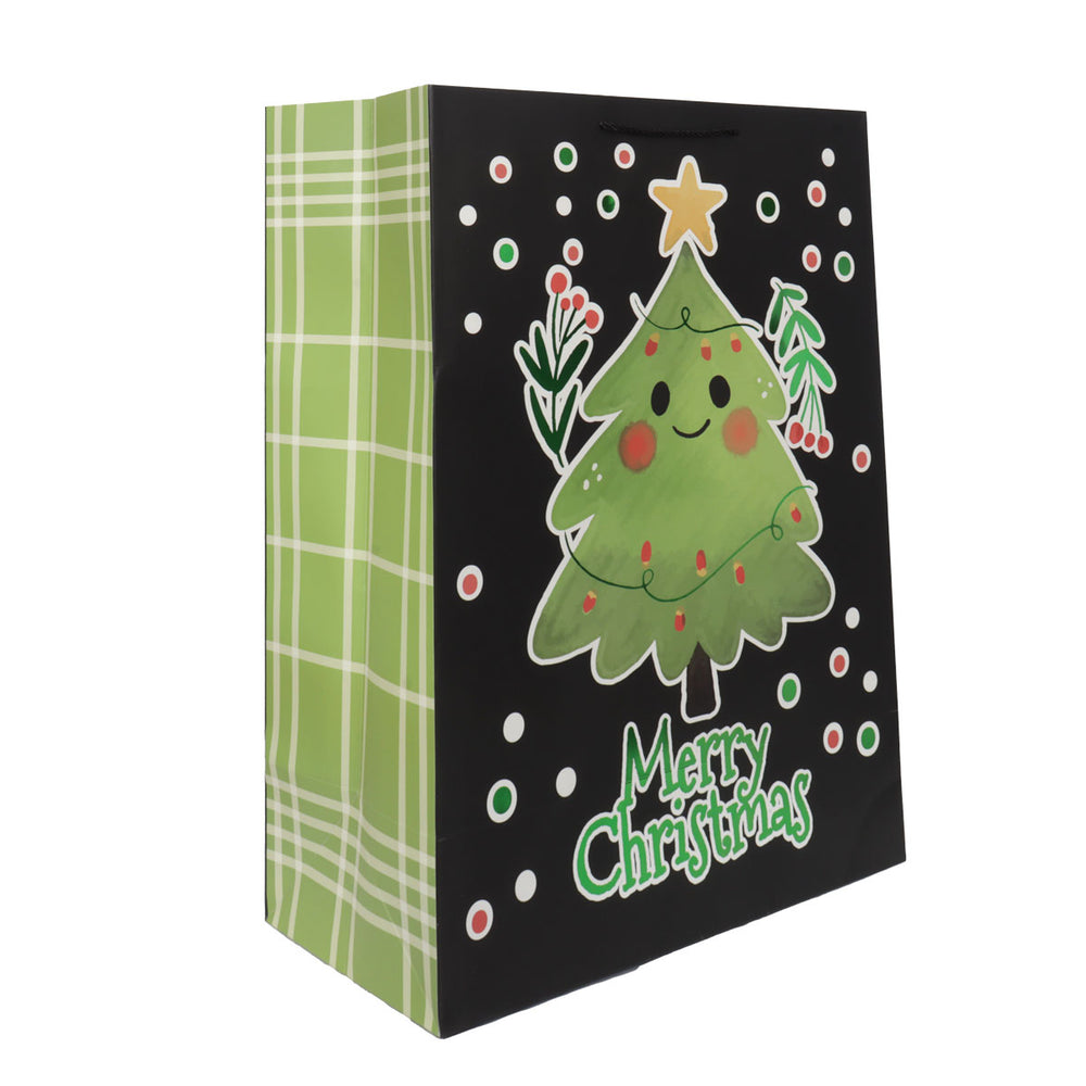 Bolsa de Regalo Navideña, Diseño Pino, Color Negro