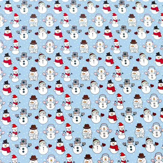Papel para Envolver Regalos Navideño, Muñeco de Nieve, Color Azul