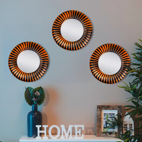 Set de 3 Espejos con Marco Color Cobre y Negro