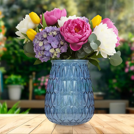 $ 4999Precio unitario /AgotadoFlorero de Cristal, Color Azul, 15x12 cm