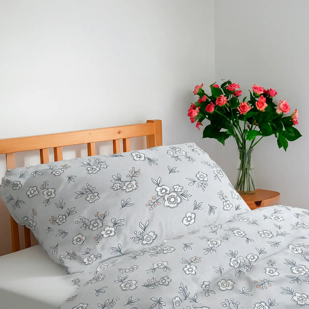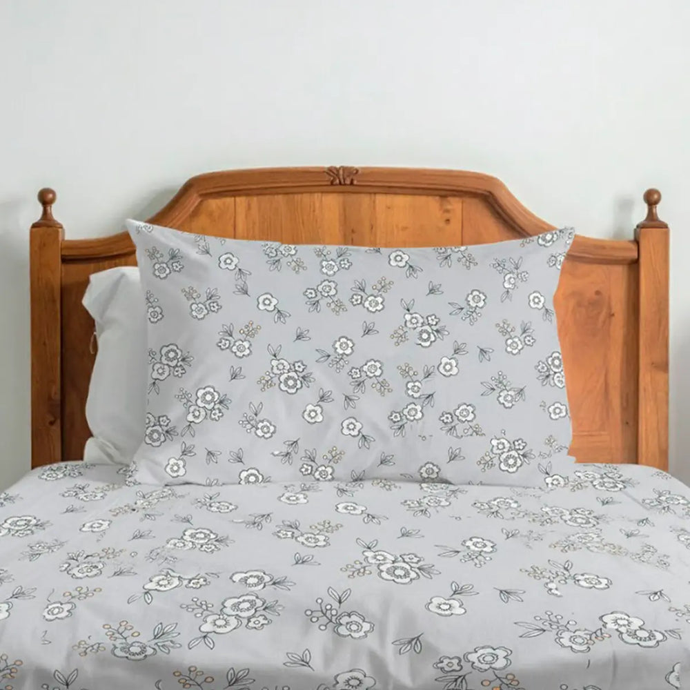 Juego de Sábanas Individual, Diseño Flores, Color Gris