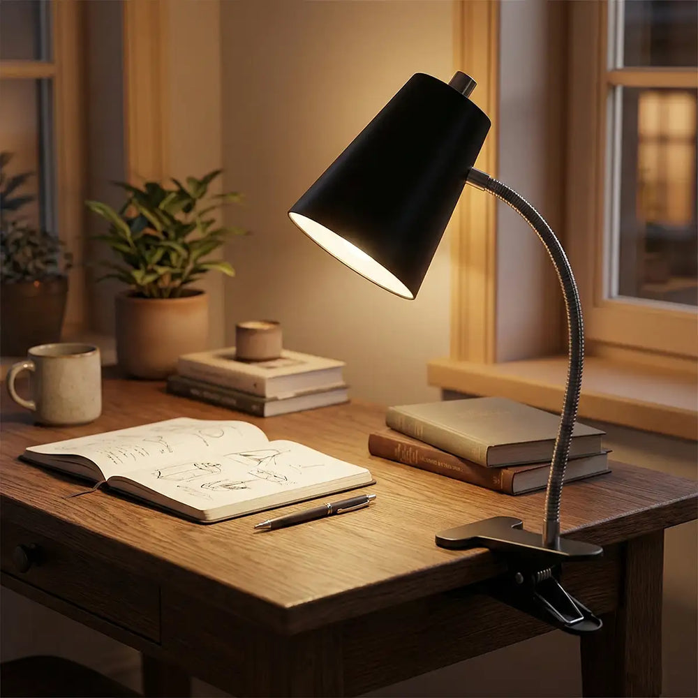 Lámpara de escritorio en salón y lámpara de lectura en estudio u oficina cuando se trabaja o se juega.
