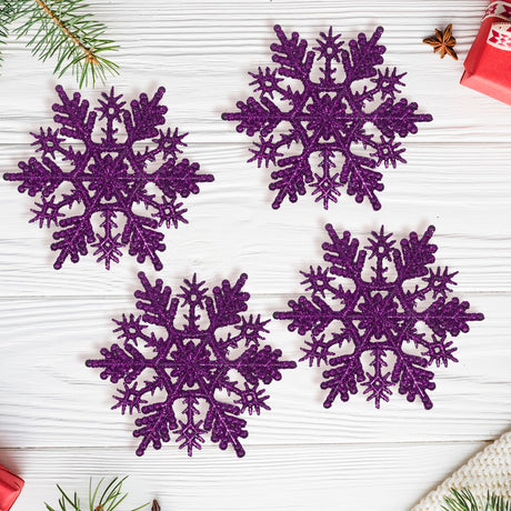 Set de 4 Copos de Nieve con Diamantina color Morado