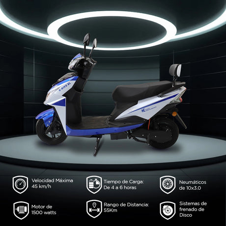 Motocicleta Eléctrica Kiwo E-Bike ZL color Azul con Blanco