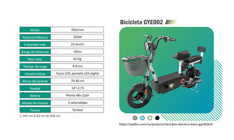 Bicicleta Eléctrica Kiwo, SSD100 color Negro con Gris