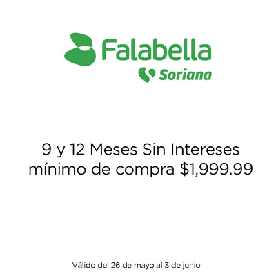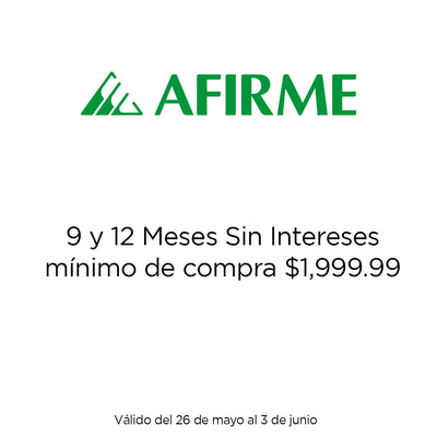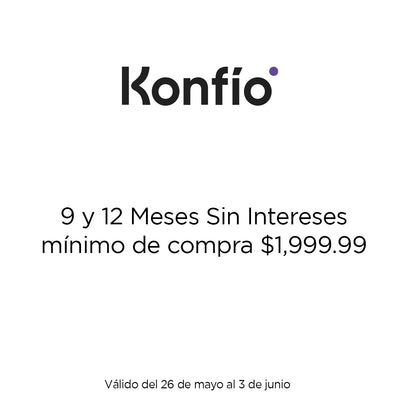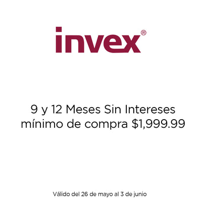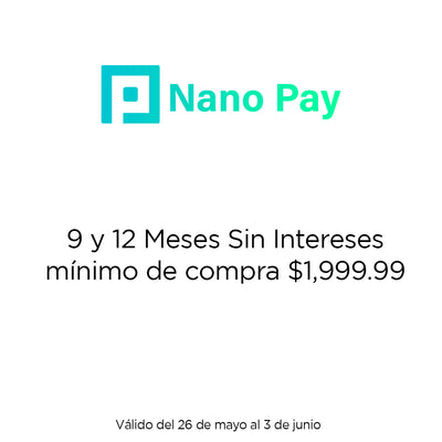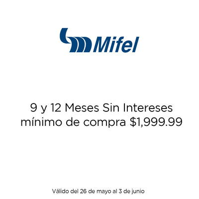 6 y 12 meses sin intereses son válidos con un mínimo de compra de $1,999. Vigencia del 26 de mayo al 03 de junio.